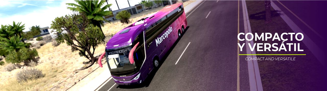 El Marcopolo G7 120MX es el autobús perfecto para quienes buscan una combinación de diseño compacto, eficiencia y lujo en Euro Truck Simulator 2 y American Truck Simulator. Este mod captura todos los detalles de su contraparte real, desde su aerodinámica distintiva hasta su experiencia de conducción realista, convirtiéndolo en una joya para los amantes del transporte de pasajeros.